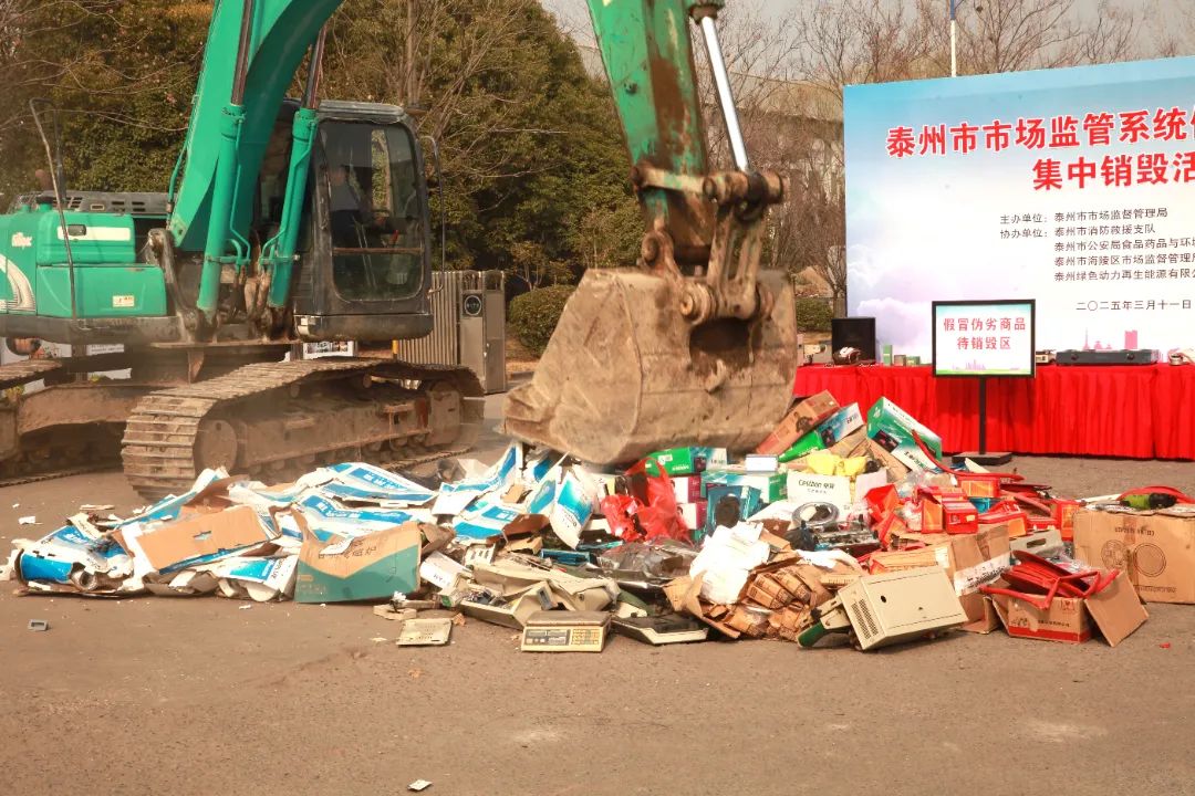 为进一步规范市场秩序,切实维护好广大人民群众的合法权益,在“3·15”国际消费者权益日来临之际,泰州市市场监管局“铁拳”出击,联合市公安局、市消防救援支队开展无害化集中销毁假冒伪劣产品活动。