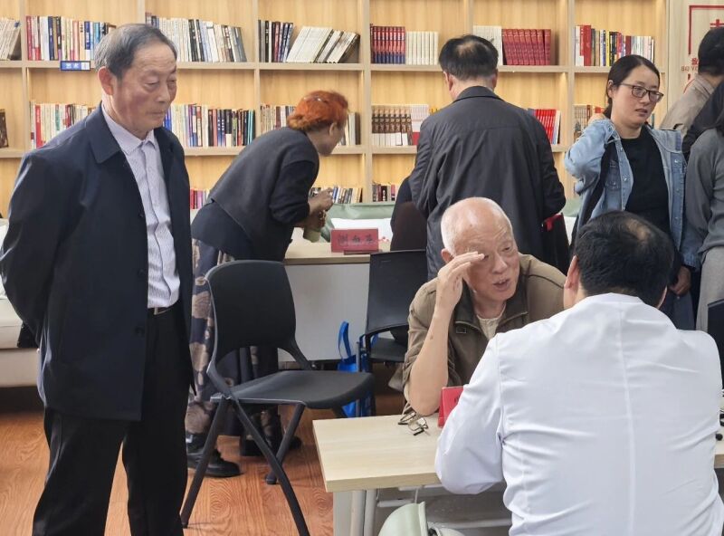 情况通报会结束后,参会老干部与中医保健医生积极互动,咨询中医保健知识,现场体验艾灸、刮痧等。